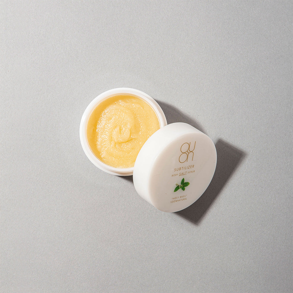ミネラル豊富な海塩と竹炭でしっかり角質ケアするソルトボディスクラブ 自然由来のソルトと植物オイルをベースに、うるおいを守りながらすっきりとなめらかな肌へ整えます。 ■海塩と竹炭による角質ケア ミネラルを含む海塩と、吸着力に優れた竹炭を配合。 余分な角質や汚れをやさしく取り除き、すっきりとした肌へ導きます。 ■しっかりとしたスクラブ感 適度な粒感のあるソルトが肌に心地よくなじみ、なめらかな仕上がりへ。 濡れた肌にやさしくなじませることで、徐々に溶けるように広がります。 ■植物オイルでうるおいをキープ ホホバ種子油やツバキ油などの植物オイルを配合。 角質ケア後の肌をしっとりと整え、やわらかな状態へ導きます。 ■ホーリーバジル配合のボタニカルケア 整肌成分としてホーリーバジルを配合し、肌をすこやかに整えます。 漬け込みハーブオイルベースで、植物の恵みを感じられる処方です。 ■爽やかなシトラスグリーンの香り みずみずしく軽やかなシトラスグリーンの香り。 バスタイムをすっきりとした心地よいひとときに演出します。 ■ピックアップ成分 ・ヒポファエラムノイデス果実油/整肌成分 ・グレープフルーツ果皮油/整肌成分 ・ハッカ油/整肌成分 【使用方法】 清潔なスプーン等で適量を手に取り、濡れたお肌になじませるようにマッサージした後、ぬるま湯で洗い流してください。 バスソルトとしてもご使用いただけます。 【使用の目安】 開封後2~3カ月 |