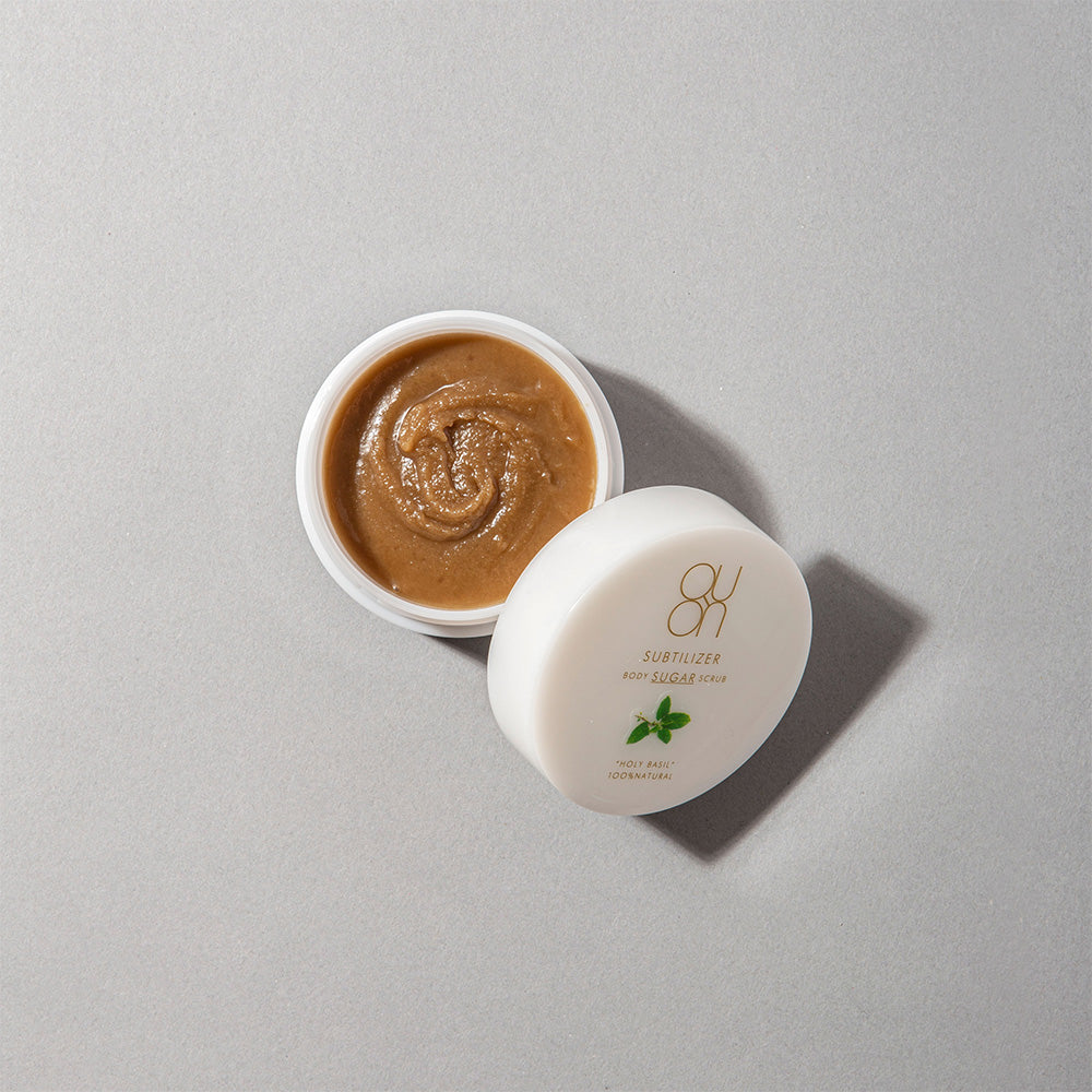 やさしい肌あたりで古い角質をケアするミネラル豊富なシュガーボディスクラブ 自然由来のシュガーと植物オイルをベースに、うるおいを守りながらなめらかでやわらかな肌へ整えます。 ■ミネラル豊富なシュガーでやさしく角質ケア 奄美大島諸島産のサトウキビを100%使用した素焚糖を配合。 保湿力のあるシュガーが肌のうるおいを保ちながら、余分な角質や汚れをやさしく取り除きます。 ■植物オイルでしっとりなめらかな仕上がり ホホバ種子油やツバキ油などの植物オイルを配合。 角質ケア後の肌をしっとりと整え、やわらかな質感へ導きます。 ■ホーリーバジル配合のボタニカルケア 整肌成分としてホーリーバジルを配合し、肌をすこやかに整えます。 漬け込みハーブオイルベースで、植物の恵みを感じられる処方です。 ■やさしくなじんでつるんとした肌へ 濡れた肌にやさしくなじませることで、シュガーが少しずつ溶けながら肌に密着。 毛穴汚れや古い角質をオフし、なめらかで透明感のある印象の肌へ導きます。 ■華やかで爽やかな香り シトラスフローラルの軽やかで心地よい香り。 バスタイムを華やかでリフレッシュできるひとときに演出します。 ■ピックアップ成分 ・ツバキ油/エモリエント成分 ・カンゾウ根エキス/整肌成分 ・ラベンダー花エキス/着香成分 【使用方法】 清潔なスプーン等で適量を手に取り、濡れたお肌になじませるようにマッサージした後、ぬるま湯で洗い流してください。 バスシュガーとしてもご使用いただけます。 【使用の目安】 開封後2~3カ月 |
