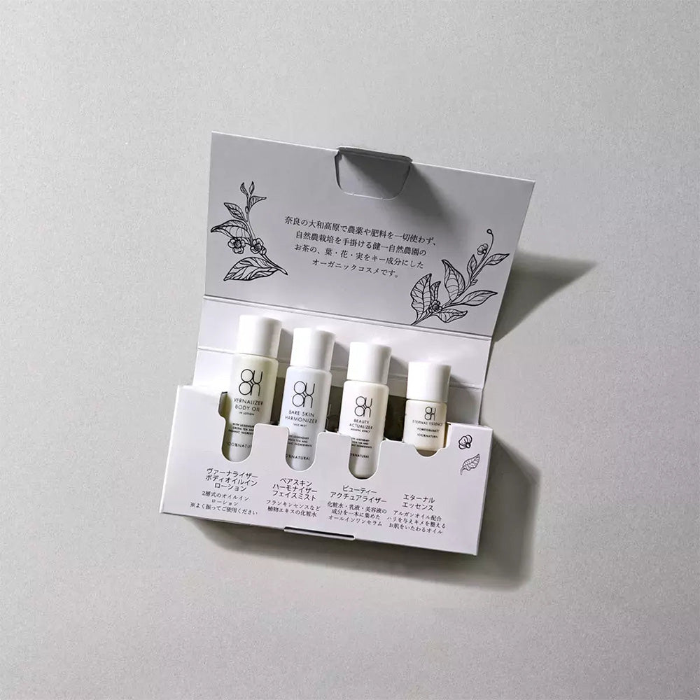 ・ヴァーナライザーボディオイルインローション 9mL ・ビューティーアクチュアライザー 7mL ・ベアスキンハーモナイザーフェイスミスト 10mL ・エターナルエッセンス 2mL |