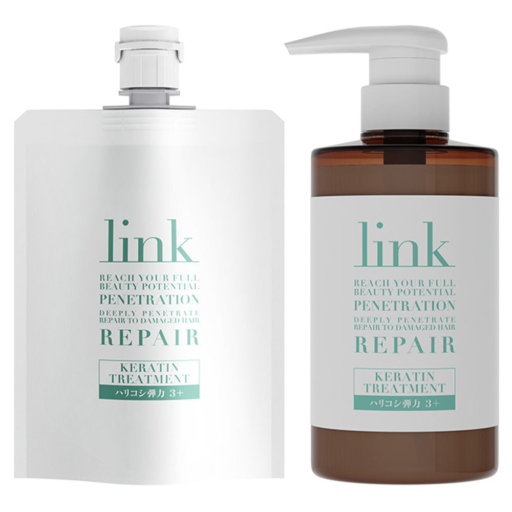 ふんわり、ハリコシのある仕上がり リンク リアクション テクノロジーにより、link ケラチン シャンプーの補修成分と反応し、補修効果を高める反応型トリートメント。 【主な成分とその効果】 |