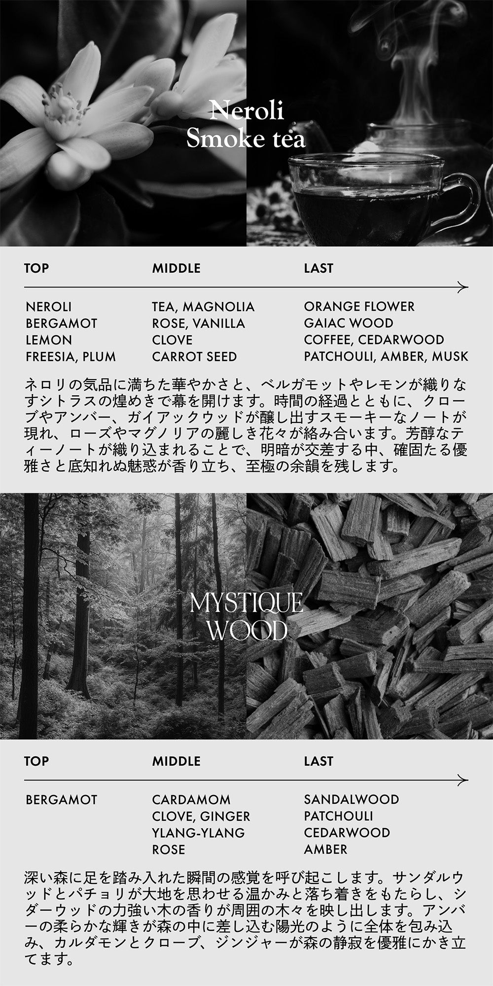 | 香り | BLANCHE ブランシュ / Citrus Vert シトラスベール / JASMIN Dore' ジャスミンドレ / LATTE ROSE ラテローズ / Neroli Smoke tea ネロリスモークティー / MYSTIQUE WOOD ミスティックウッド / NOIR ノワール / BLEU CLAIR ブルークレール / Pair BLANCHE ペアーブランシュ |